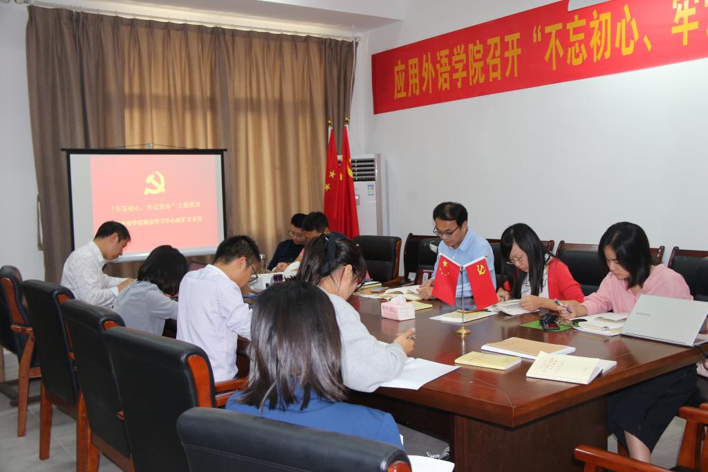 召开理论学习中心组扩大会议, 深入开展“不忘初心、牢记使命”主题教育集中学习会。理论学习中心组成员、党小组组长、教师代表参加本次学习会。